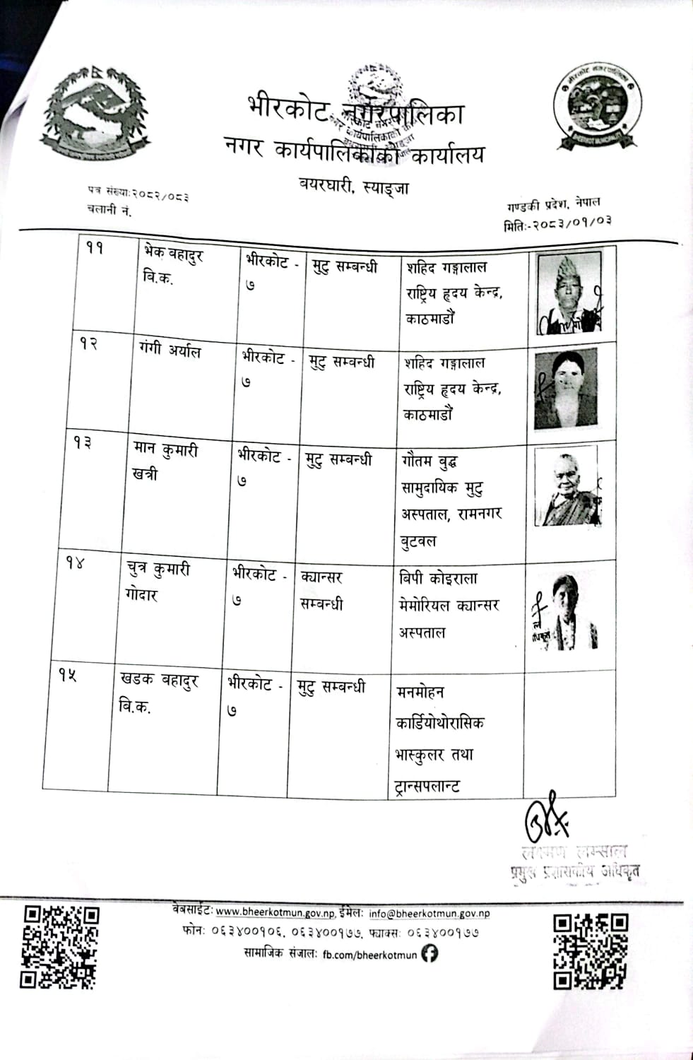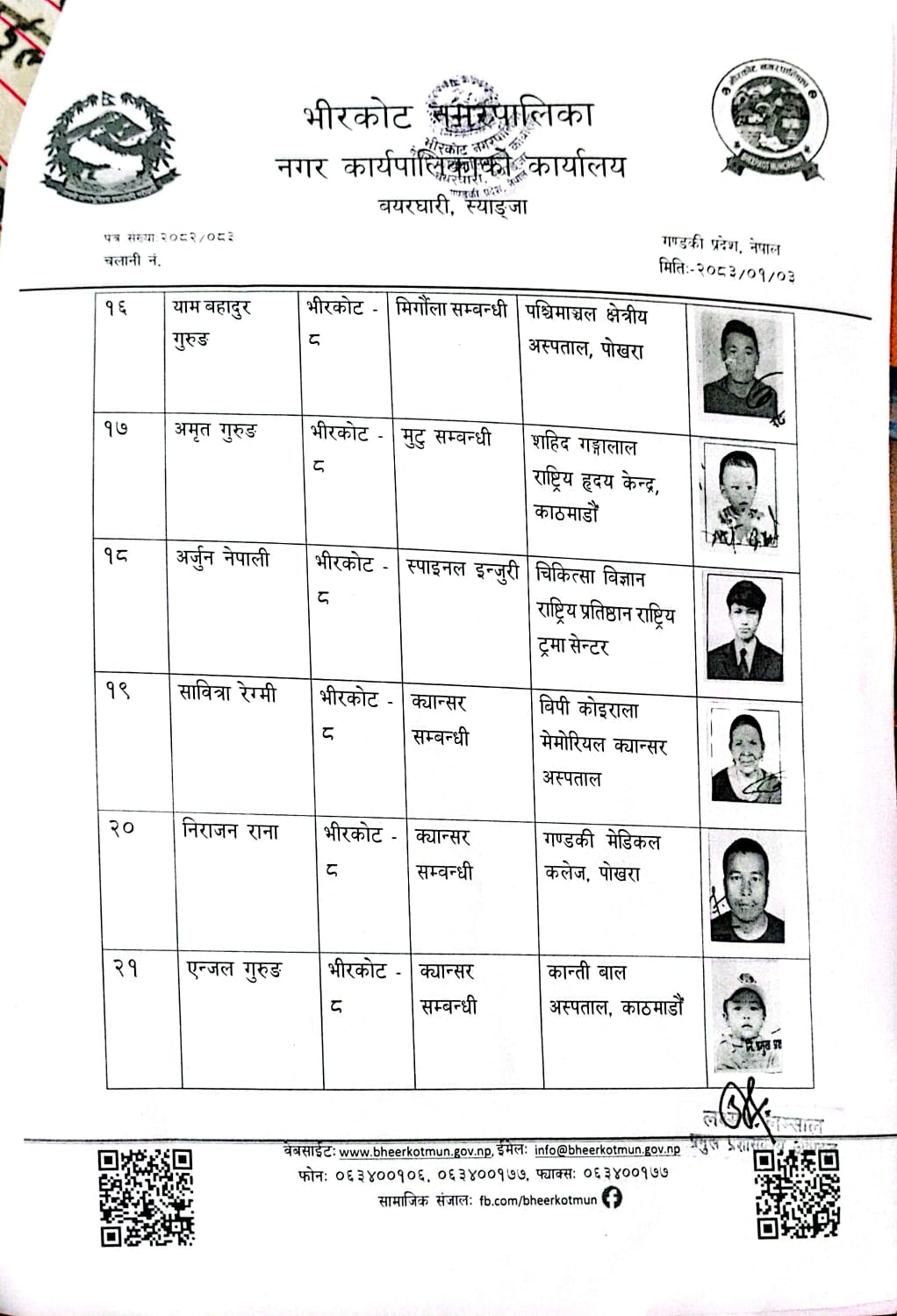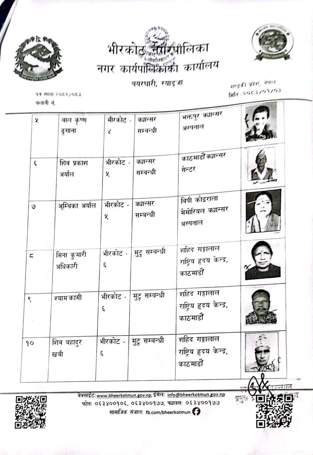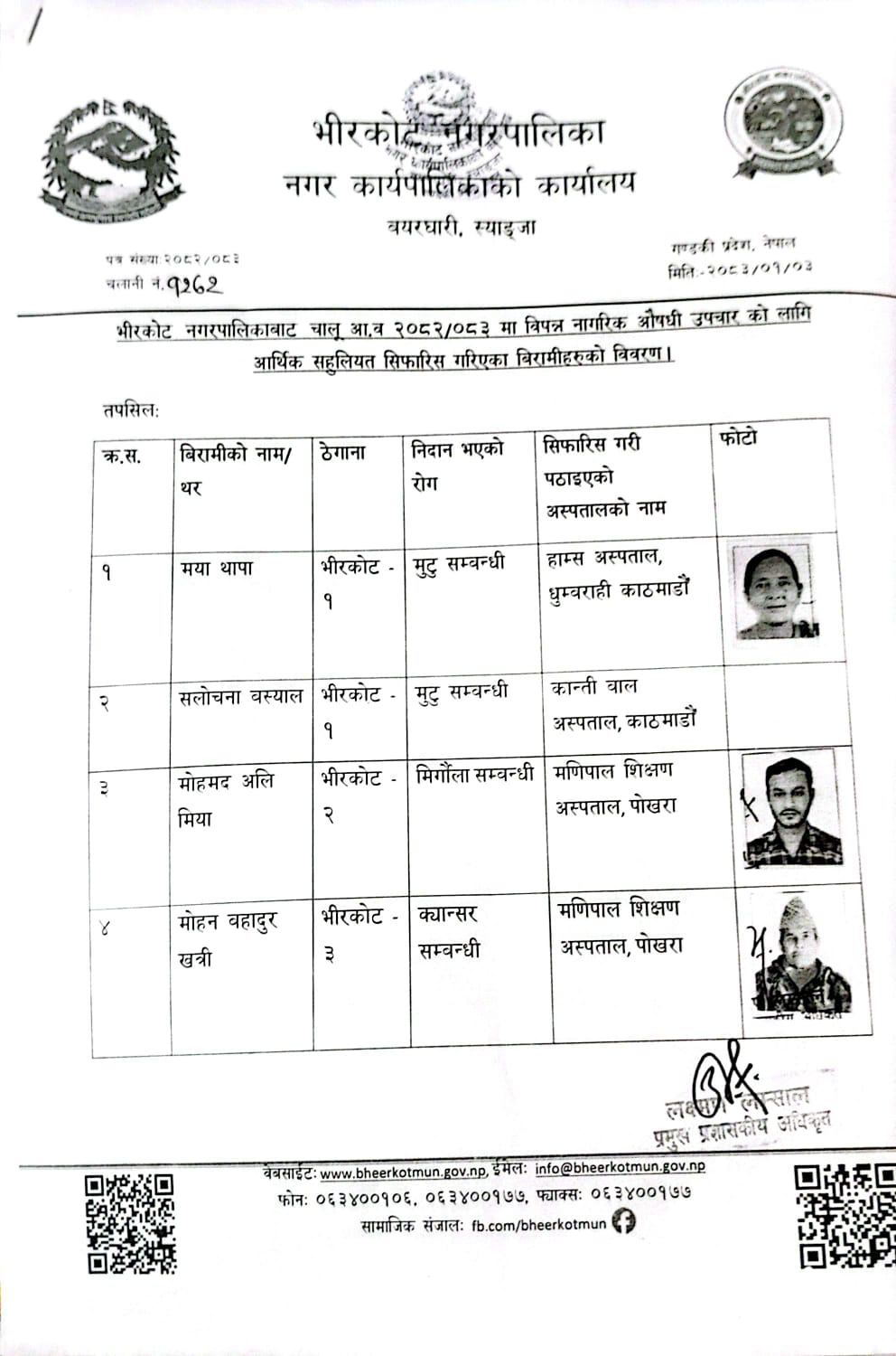 भीरकोट नगरपालिकाको आ.व. २०८२/८३ मा विपन्न नागरिक आर्थिक सहुलियत सिफारिस प्राप्त गर्ने सेवाग्राहीहरुको सूचु