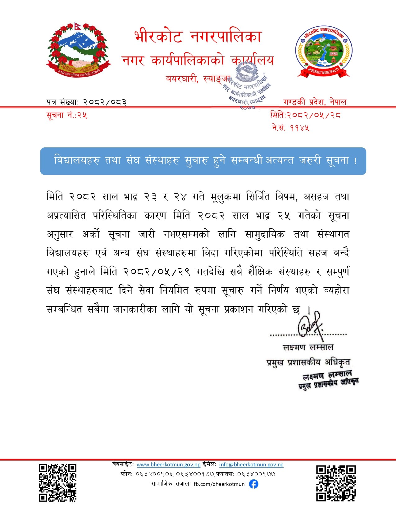 विद्यालयहरु तथा संघ संस्थाहरु सुचारु हुने सम्बन्धी अत्यन्त जरुरी सूचना !