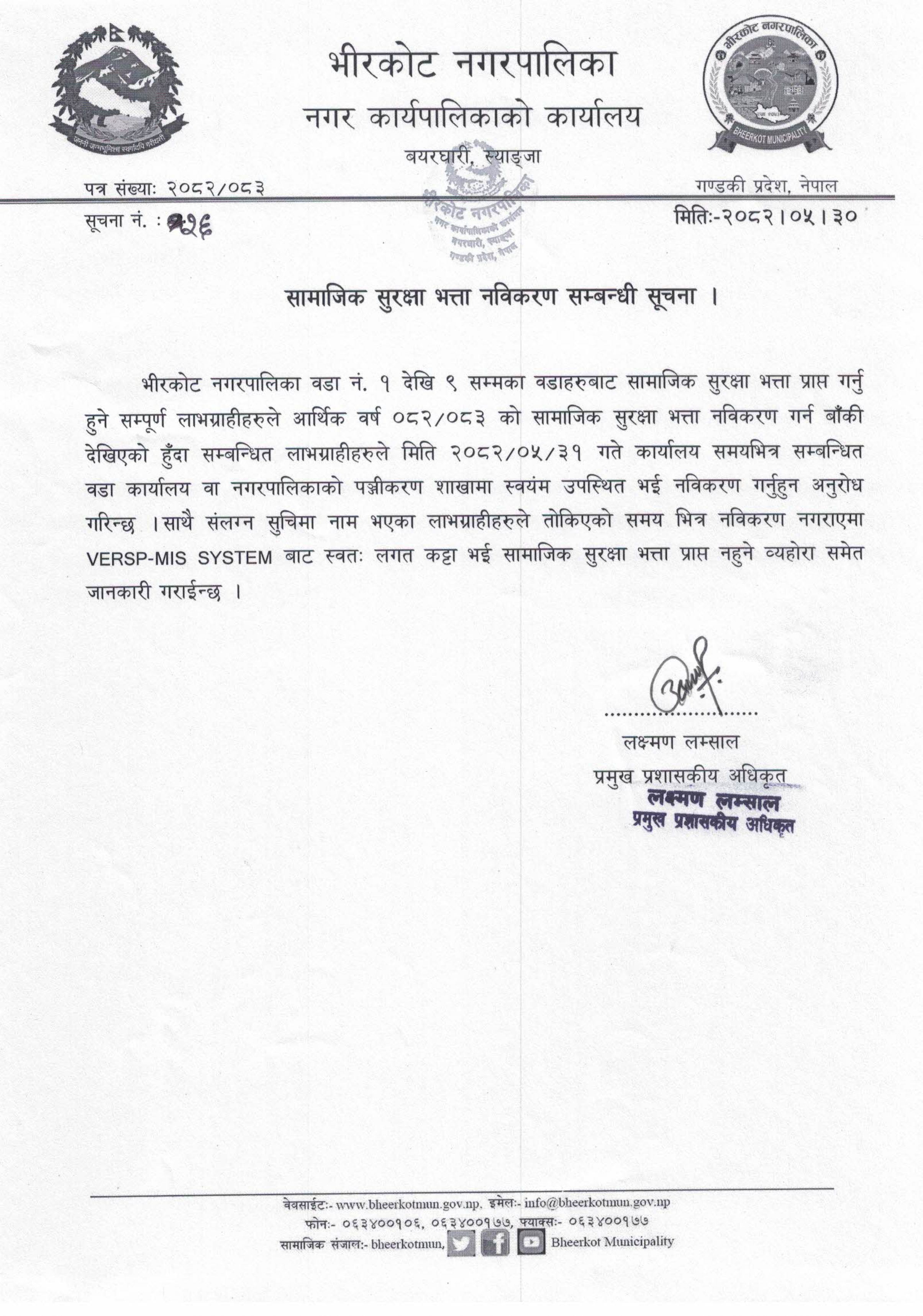 सामाजिक सुरक्षा भत्ता नविकरण सम्बन्धी सूचना !
