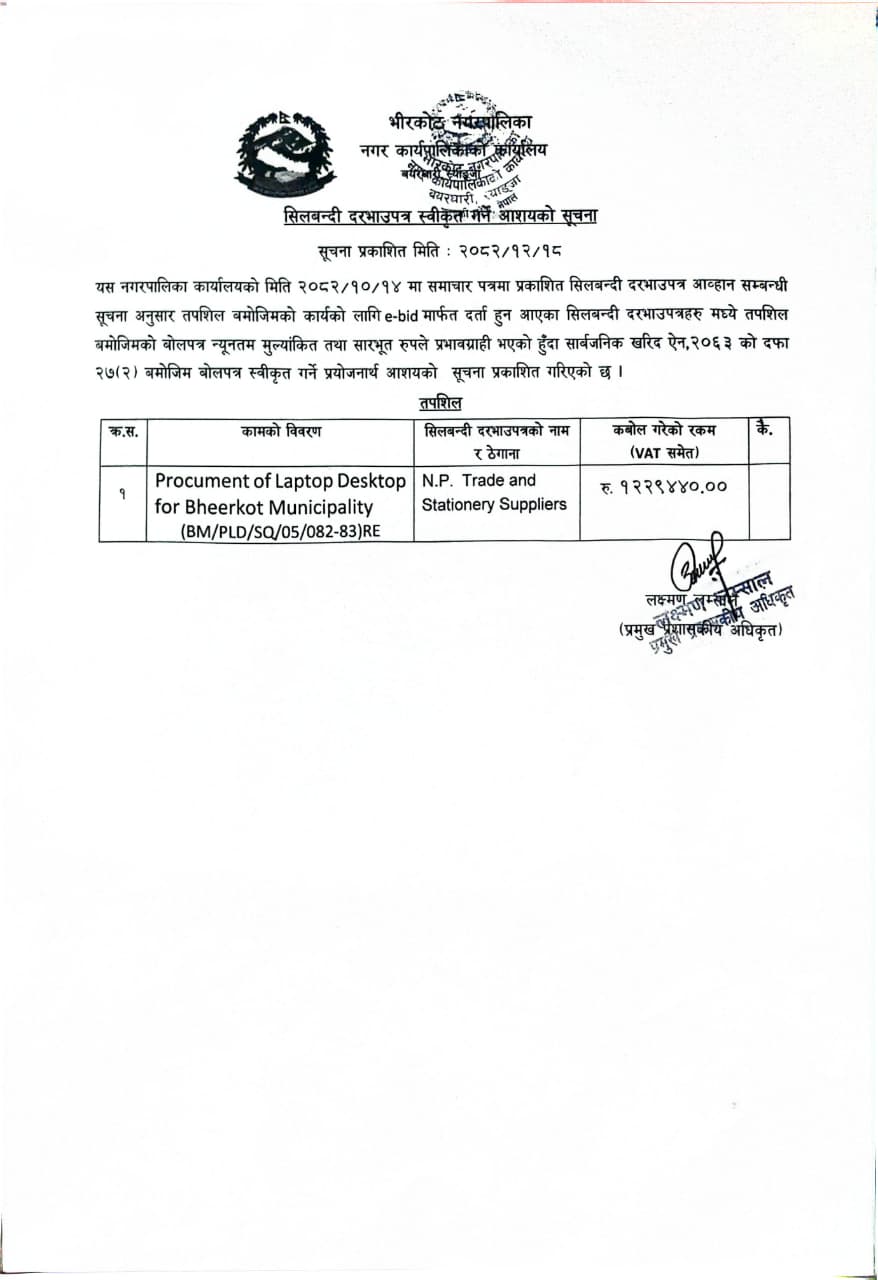 सिलबन्दी दरभाउपत्र स्वीकृत गर्ने आशयको सूचना !