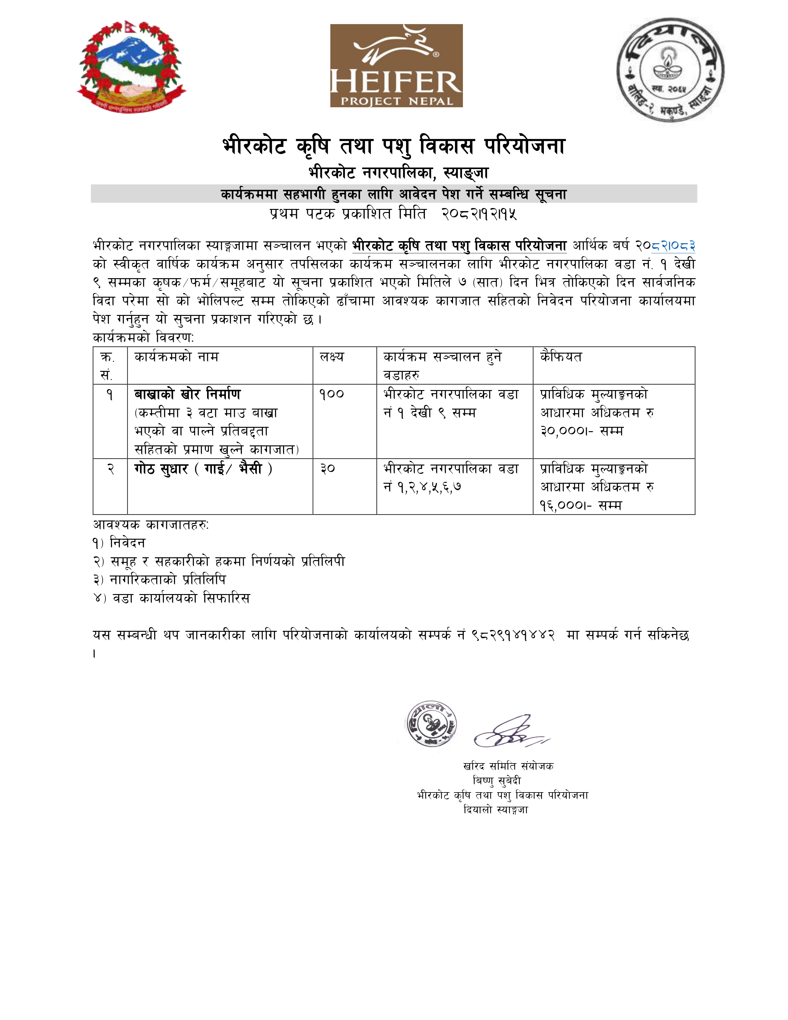 कार्यक्रममा सहभागी हुनका लागि आवेदन पेश गर्ने सम्बन्धी सूचना !