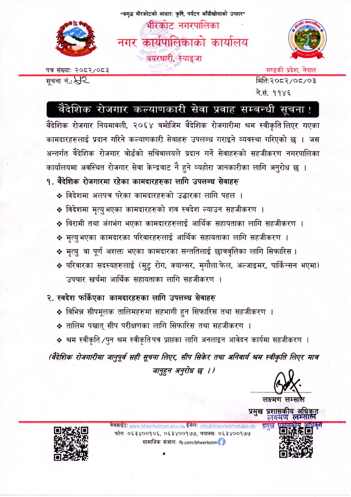 वैदेशिक रोजगार कल्याणकारी सेवा प्रवाह सम्बन्धी सूचना !