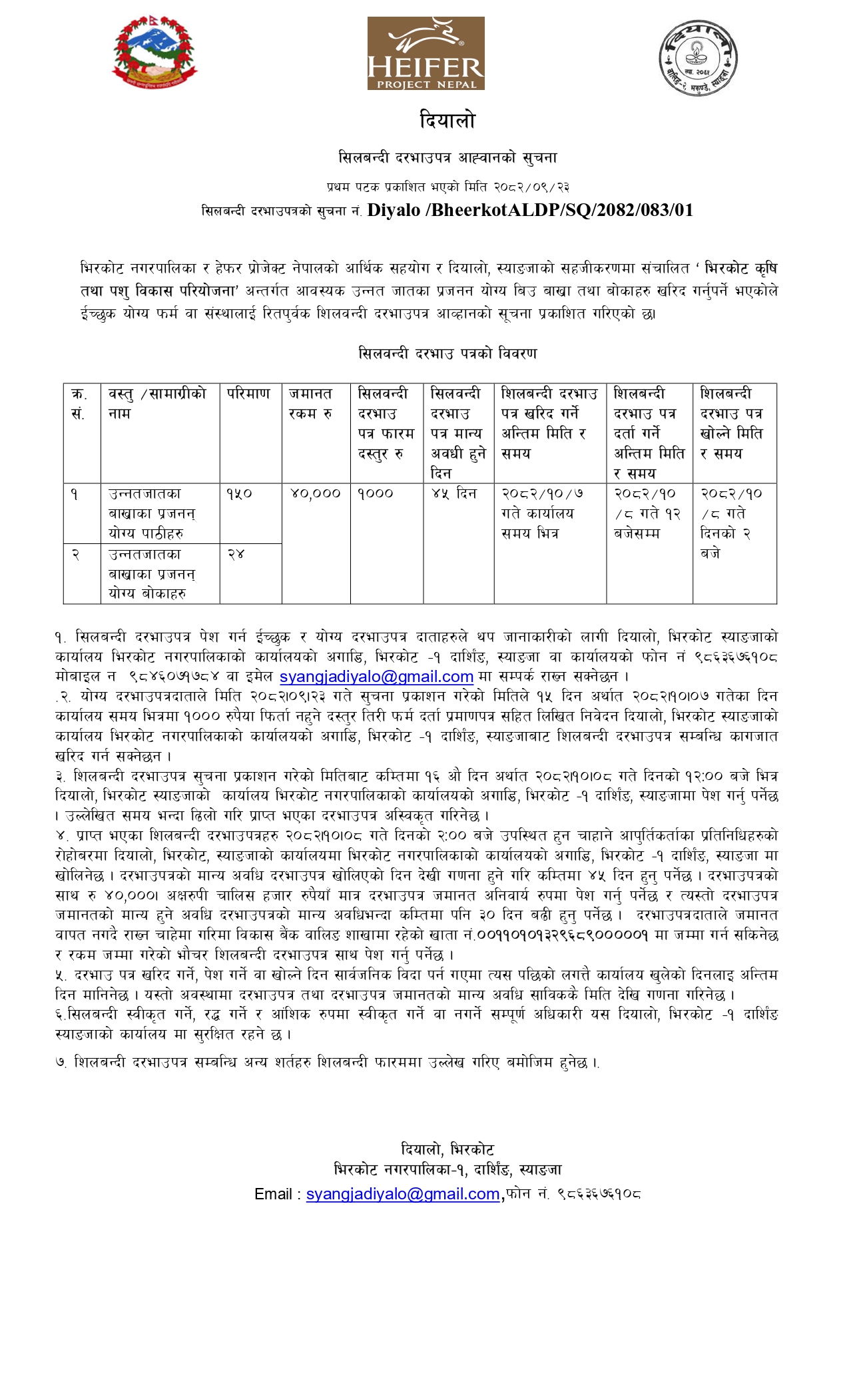 शिलबन्दी दरभाउपत्र आह्वानको सूचना !