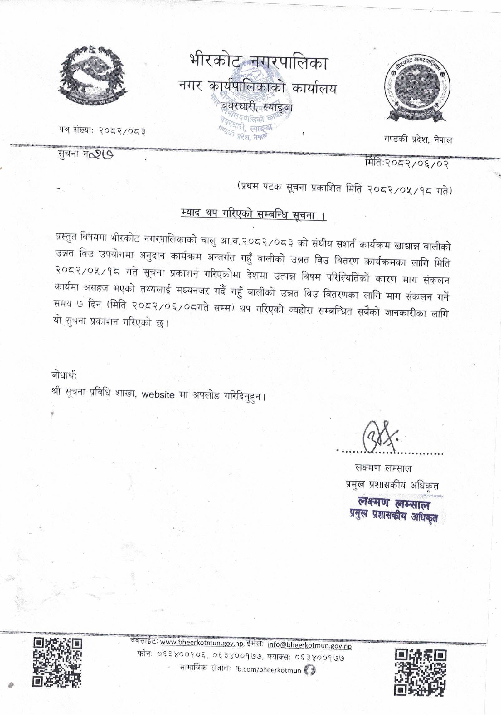 ५०% अनुदानमा गहुँ बालीको बिउ मागको लागि म्याद थप गरिएको सम्बन्धी सूचना !